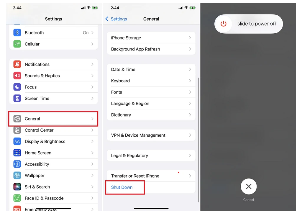 - Timing: Do not hold the buttons too briefly. Wait until the power-off slider clearly appears.